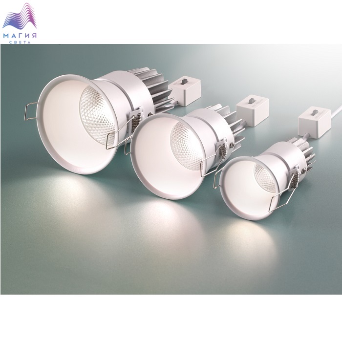 Встраиваемые светодиодные светильники Novotech Lang с переключателем цветовой температуры 3000К (теплый белый) -4000К (нейтральный белый) -6000К (холодный белый).