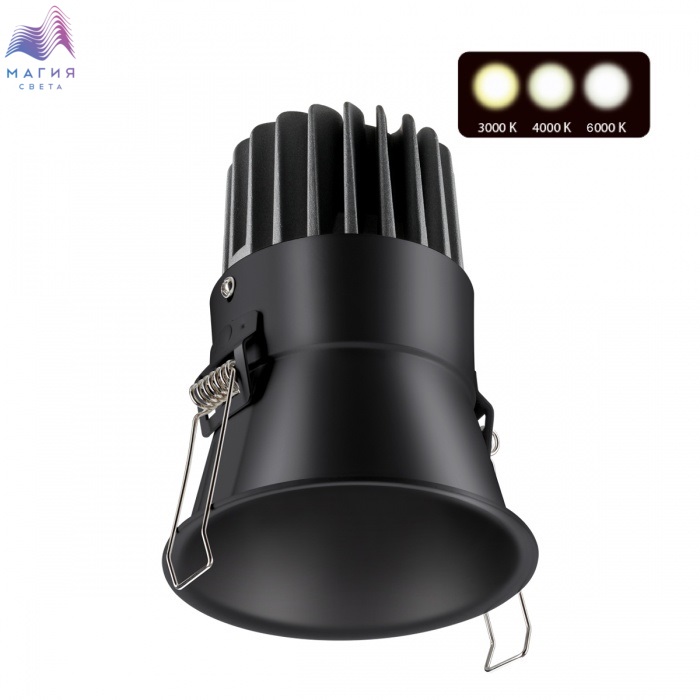 Встраиваемые светодиодные светильники Novotech Lang с переключателем цветовой температуры 3000К (теплый белый) -4000К (нейтральный белый) -6000К (холодный белый).