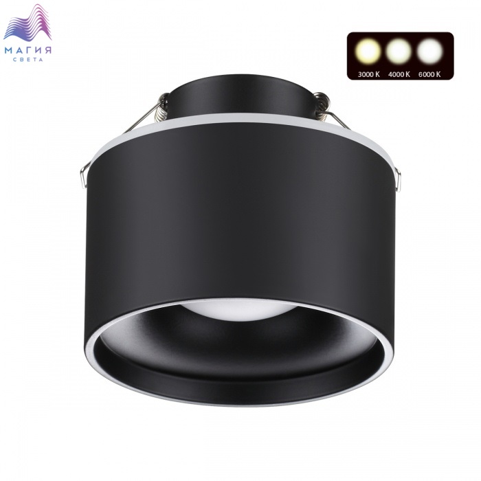 Светильник встраиваемый светодиодный Novotech Giro с переключателем цветовой температуры. На корпусе светильника находится переключатель 3000К-4000К-6000К, с помощью которого Вы можете самостоятельно выбрать нужную Вам цветовую температуру.