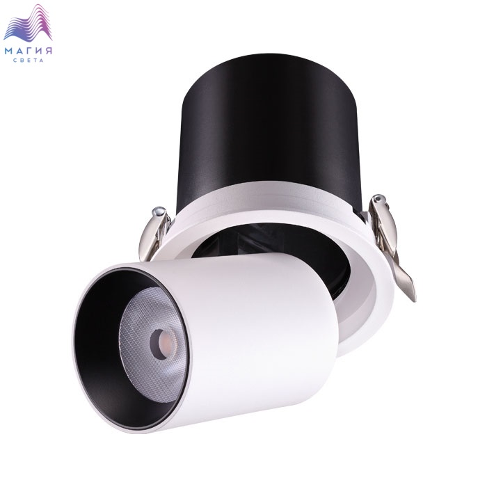 Встраиваемый поворотный светильник Novotech Lanza 358081 исполнен в современном стиле. Металлический корпус и плафон окрашены в белый и черный цвета. В качестве источника света выступает светодиод теплого цвета свечения (3000K). Угол поворота - 350 градусов. Угол рассеивания - 24 градуса.