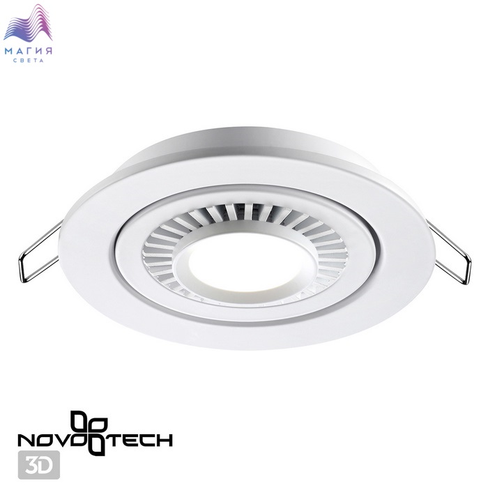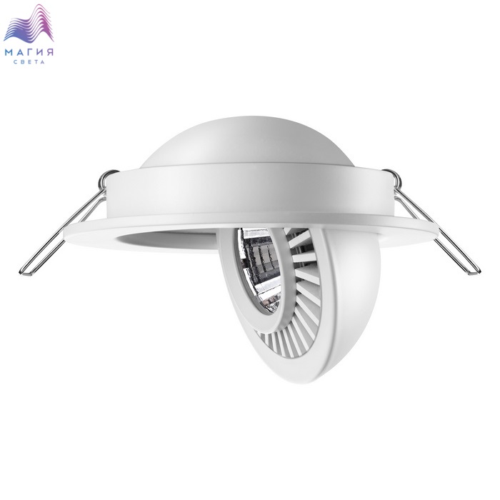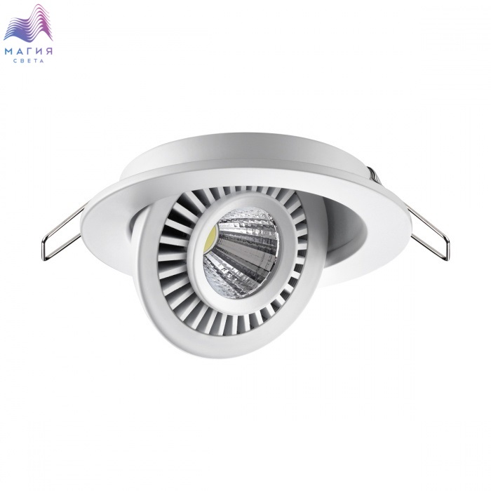 Встраиваемые поворотные светодиодные светильники Novotech Gesso прекрасно подойдут для зонирования пространства светом. Яркий и направленный свет в рабочей зоне сделает приготовление еды комфортнее. Пространство гостиной, напротив, будет освещено более мягко и рассеянно.