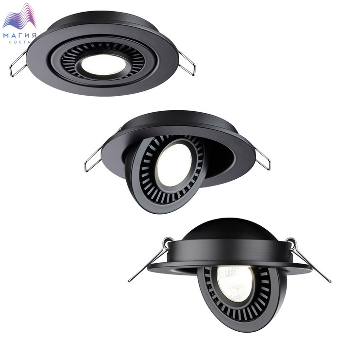 Встраиваемые поворотные светодиодные светильники Novotech Gesso прекрасно подойдут для зонирования пространства светом. Яркий и направленный свет в рабочей зоне сделает приготовление еды комфортнее. Пространство гостиной, напротив, будет освещено более мягко и рассеянно.