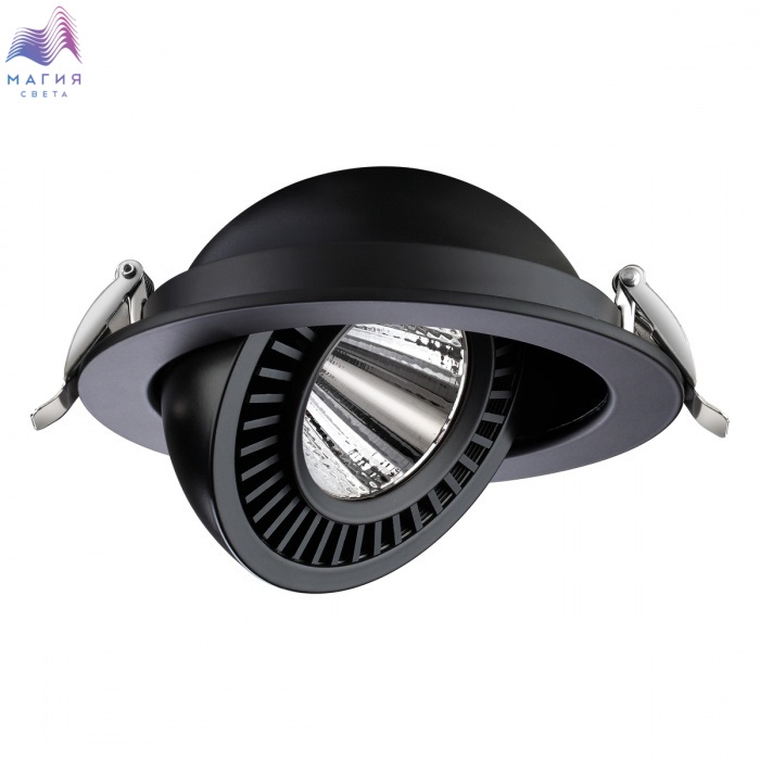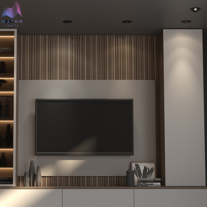 Встраиваемые поворотные светодиодные светильники Novotech Gesso прекрасно подойдут для зонирования пространства светом. Яркий и направленный свет в рабочей зоне сделает приготовление еды комфортнее. Пространство гостиной, напротив, будет освещено более мягко и рассеянно.