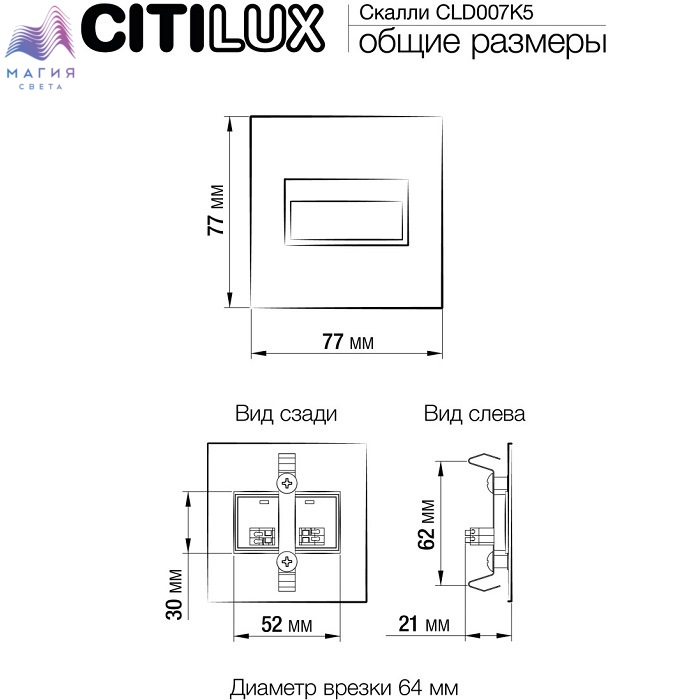 Светодиодный светильник для подсветки ступеней Citilux Скалли CLD007K5. Материал: металл/полимер. Цвте: черный/белый. Форма - квадрат. Установка светильника не вызовет трудностей - он монтируется в стандартный подрозетник.