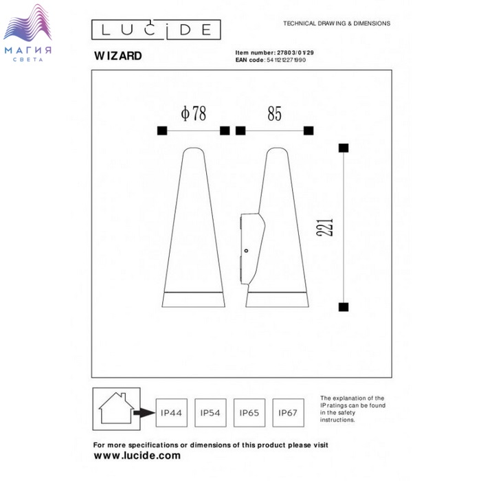 Уличный настенный светильник Lucide Wizard выполнен из высококачественного алюминия. Светильник оснащен повышенной IP-защитой от влаги и погодных условий. Свет направлен вниз.