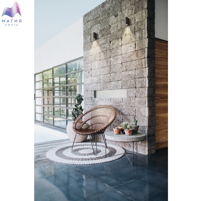 Уличное освещение тоже может быть стильным. Этому правилу соответствуют уличные настенные светильники Maytoni Slat. Корпус изготовлен из алюминия и покрыт черной краской. В качестве источников света используются лампочки с цоколем GU10. Светильники обладают IP-защитой 54.