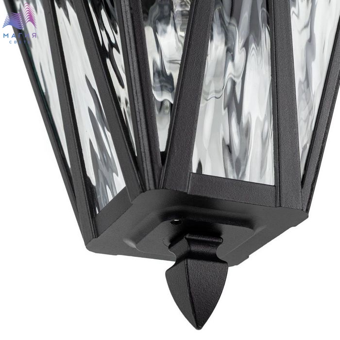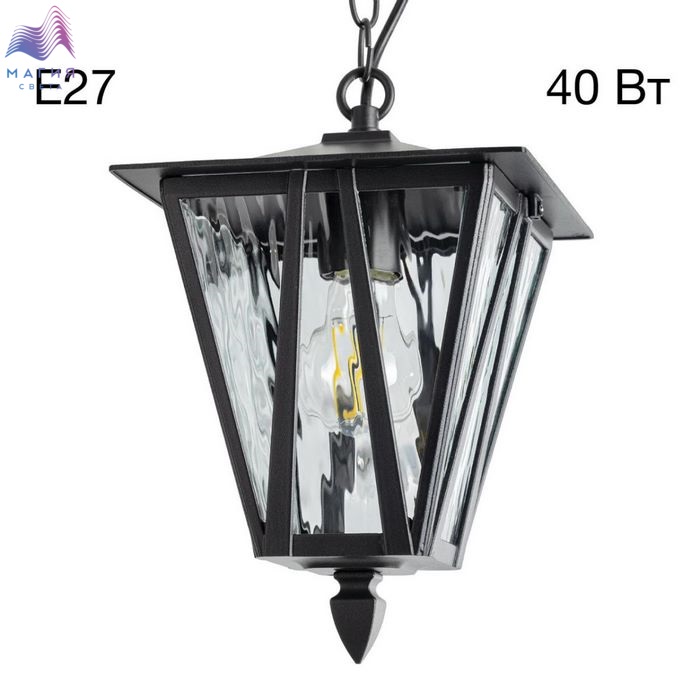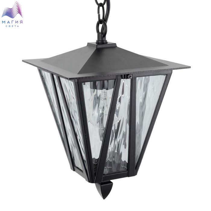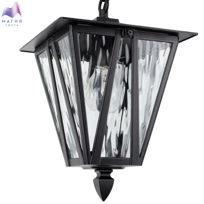 Уличный подвесной светильник Citilux FORTS CLU09S. Материал: металл/стекло. Цвет: черный/прозрачный. Плафон в форме перевёрнутой усечённой пирамиды дополнен оригинальной раскладкой и прозрачным волнистым стеклом. Модель имеет высокую степень защиты — IP54.