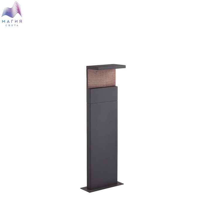 Серия уличных светильников Mantra Ruka - новинка 2020 года. Корпус изготовлен из металла. Основание окрашено в темно-серый цвет и дополнено деталью, напоминающей по своей текстуре дерево. Рассеиватель изготовлен из пластика белого цвета.