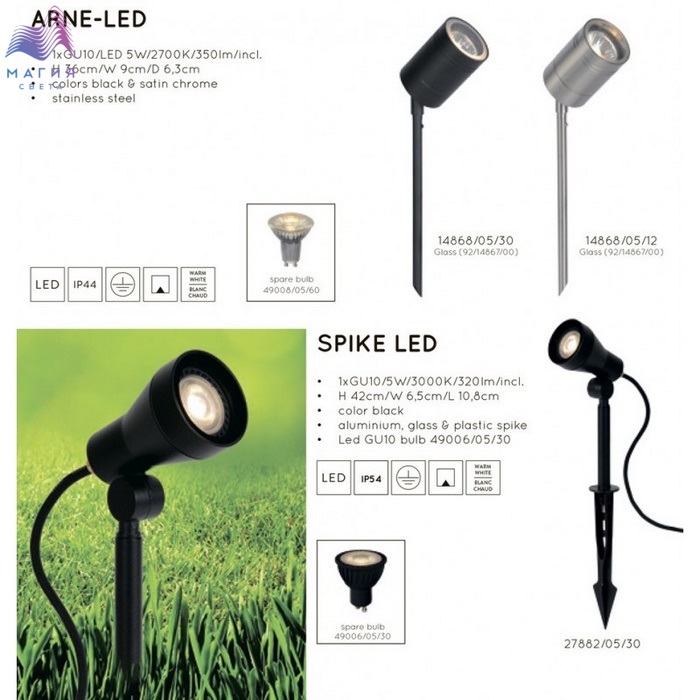 Уличный прожектор Lucide Spike выполнен из алюминия и покрыт черной краской. Светильник оснащен наконечником, устанавливаемым в грунт. Модель оснащена IP-защитой 54, что делает светильник влагостойким.