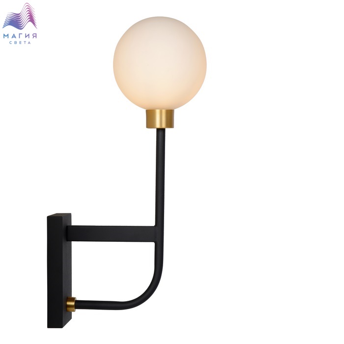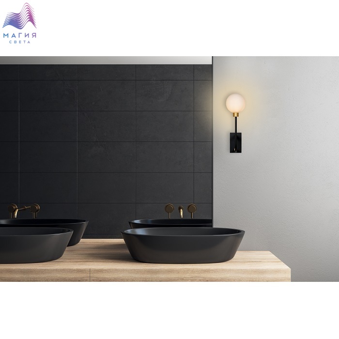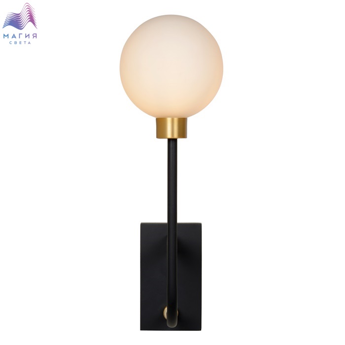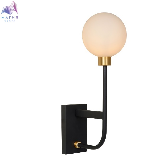 Бра Lucide Berend предназначен для использования в ванной комнате. Модель в своем дизайне сочетает классические и современные элементы. Корпус покрыт черной краской с латунными деталями. Сферический плафон изготовлен из белого стекла.