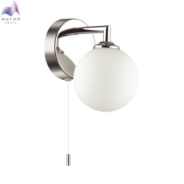 Влагозащищенное бра Lumion Piper - отличное решение для ванной комнаты с универсальным дизайном и встроенным выключателем. Основание цвета хром, стеклянный плафон белого цвета.