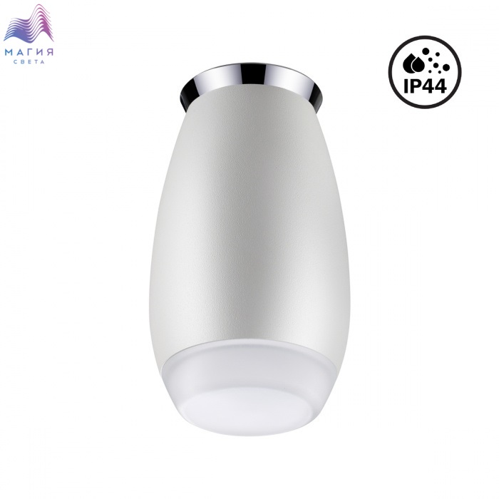 Накладной светильник с повышенной степенью пылевлагозащиты (IP44) Novotech Gent подходит для установки во влажные помещения. В корпусе светильника есть акриловые части, поэтому его используют только с LED лампой max.9Вт. Лампа в комплект не входит.