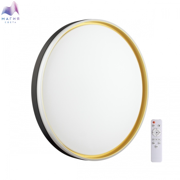 Светильник 7619/DL серии Сонекс Savi состоит из металлического основания и пластикового рассеивателя. Форма плафона: круглая, декорирована ободом из пластика черного и золотистого цветов. Степень защиты IP43 позволяет использовать светильник в определенных зонах влажных помещений. В комплект входит пульт ДУ, мощность 48Вт.