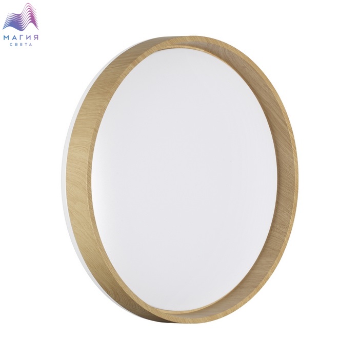 Светильник 7684/ELN серии Сонекс Gari wood. Материал: металл/пластик. Форма: круг, декор - обод "под дерево" из пластика коричневого цвета. Степень защиты IP43. Переключатель температуры цвета (ССT) на драйвере, с помощью которого осуществляется изменение цветовой температуры 3000/4000/6000К.
