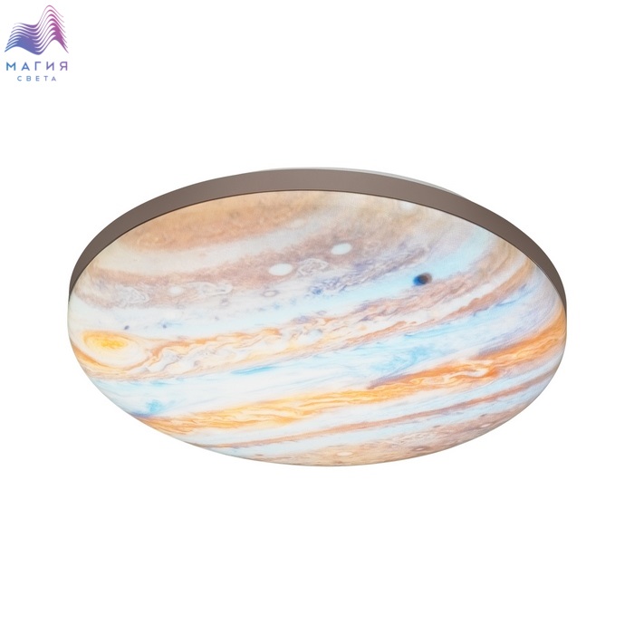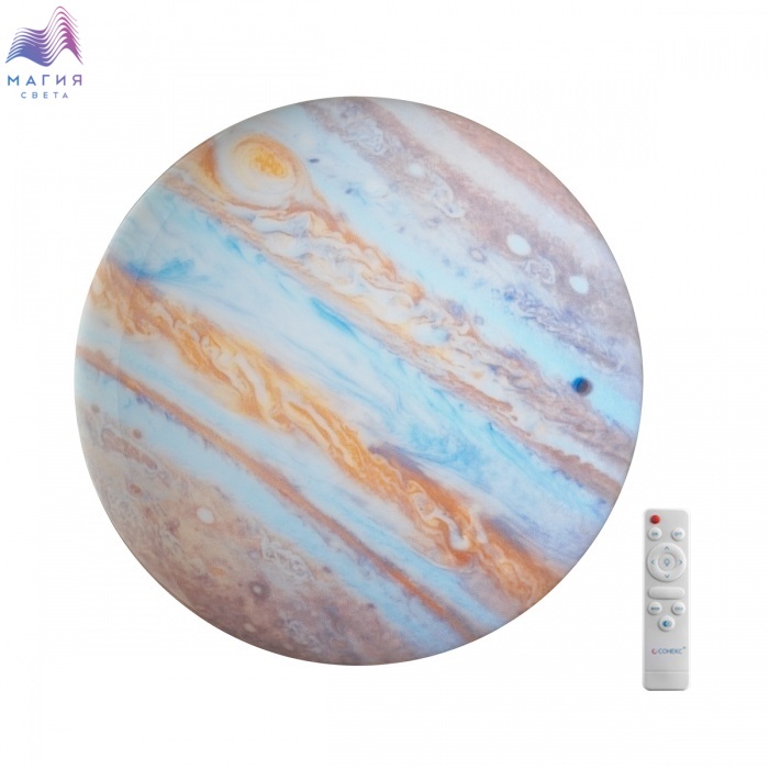 Светильник 7724/DL серии Сонекс Jupiter состоит из металлического основания и пластикового рассеивателя. Материал рассеивателя - высококачественный пластик марки PMMA 2.0 цвета мульти с глянцевой поверхностью. Степень защиты IP43 позволяет использовать светильник в определенных зонах влажных помещений. В комплект входит заменяемый LED модуль с линзами, мощностью 48 Вт, которая соответствует лампе накаливания 440 Вт. А также пульт ДУ, с помощью которого осуществляется плавное изменение цветовой температуры 3000-6000К, изменение яркости, переход в режим переключения теплого/белого/холодного/ночного света. Светильник имеет функцию "память".