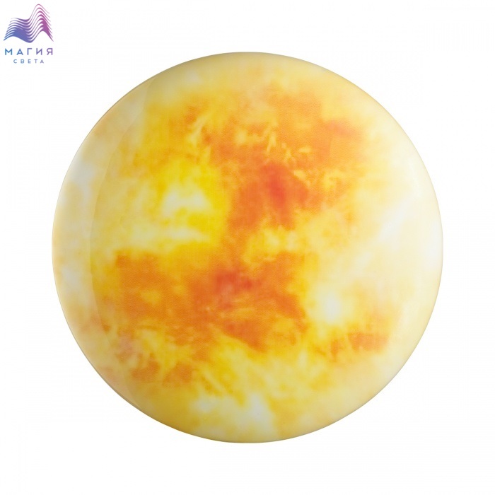 Светильник 7726/СL серии Сонекс Sun состоит из металлического основания и пластикового рассеивателя. Основание декорировано орнаментом на плафоне с рисунком поверхности Солнца. Степень защиты IP43 позволяет использовать светильник в определенных зонах влажных помещений. В комплект входит заменяемый LED модуль с линзами, мощностью 30 Вт, которая соответствует лампе накаливания 270 Вт. Источник света имеет комфортную цветовую температуру 4000К (белый свет).