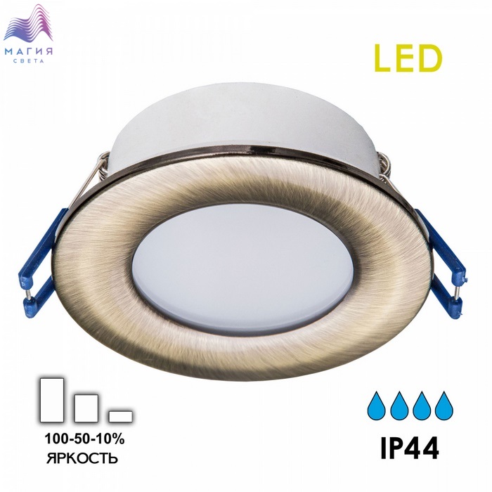 Встраиваемый светильник Citilux Акви CLD008013 круглой формы. Матераил корпуса - полимер, цвет - бронза. Рассеиватель - полимер. Модель оснащена ступенчатым диммером 100-50-10%, управляется обычным настенным выключателем. Мощность 5Вт, цветовая температура 3500 К, угол рассеивания 120 градусов, класс защиты IP44.