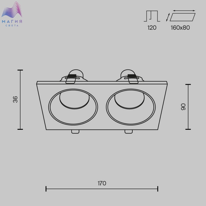 Встраиваемый светильник Zoom GU10 2x50Вт IP 65.