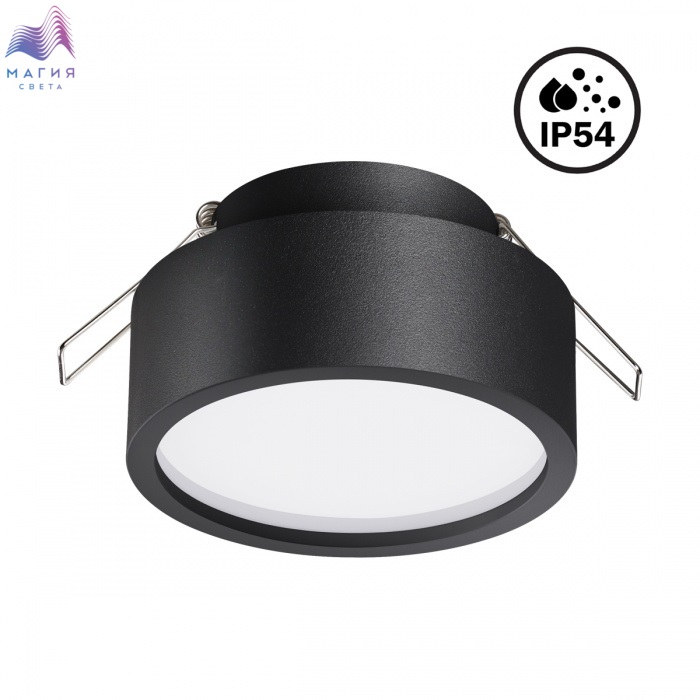 Влагозащищённый встраиваемый светодиодный светильник Novotech May идеален для использования в ванных комнатах и в других помещениях с повышенной влажностью. Он имеет степень защиты IP54.