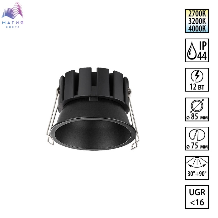 Встраиваемые светодиодные влагозащищенные (IP44) светильники Novotech SOLIS с возможностью выбора цветовой температуры (2700/3200/4000 K). Модель оснащена переключателем угла рассеивания (30°/90°), расположенного на обратной стороне светильника. 2 цвета корпуса: черный или белый.