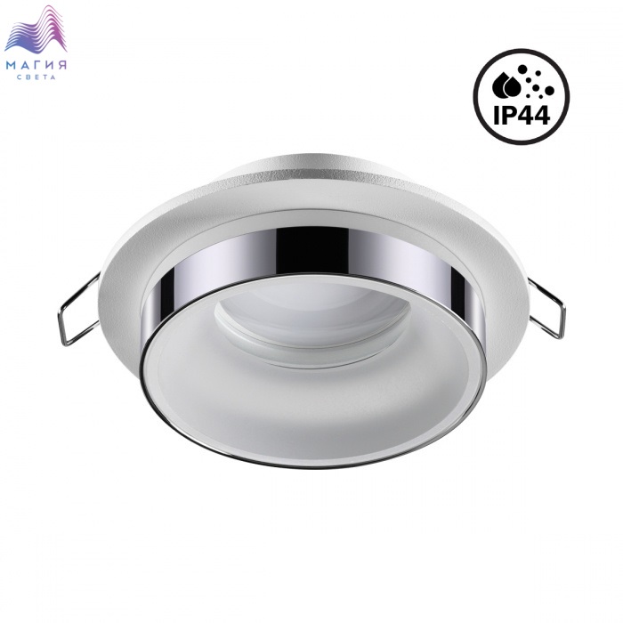 Встраиваемый неповоротный светильник Novotech Water с повышенной степенью пылевлагозащиты (IP44) подходит для установки во влажные помещения.