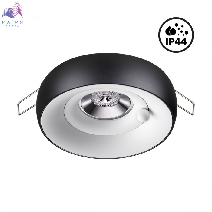 Встраиваемый неповоротный светильник Novotech Water с повышенной степенью пылевлагозащиты (IP44) подходит для установки во влажные помещения.